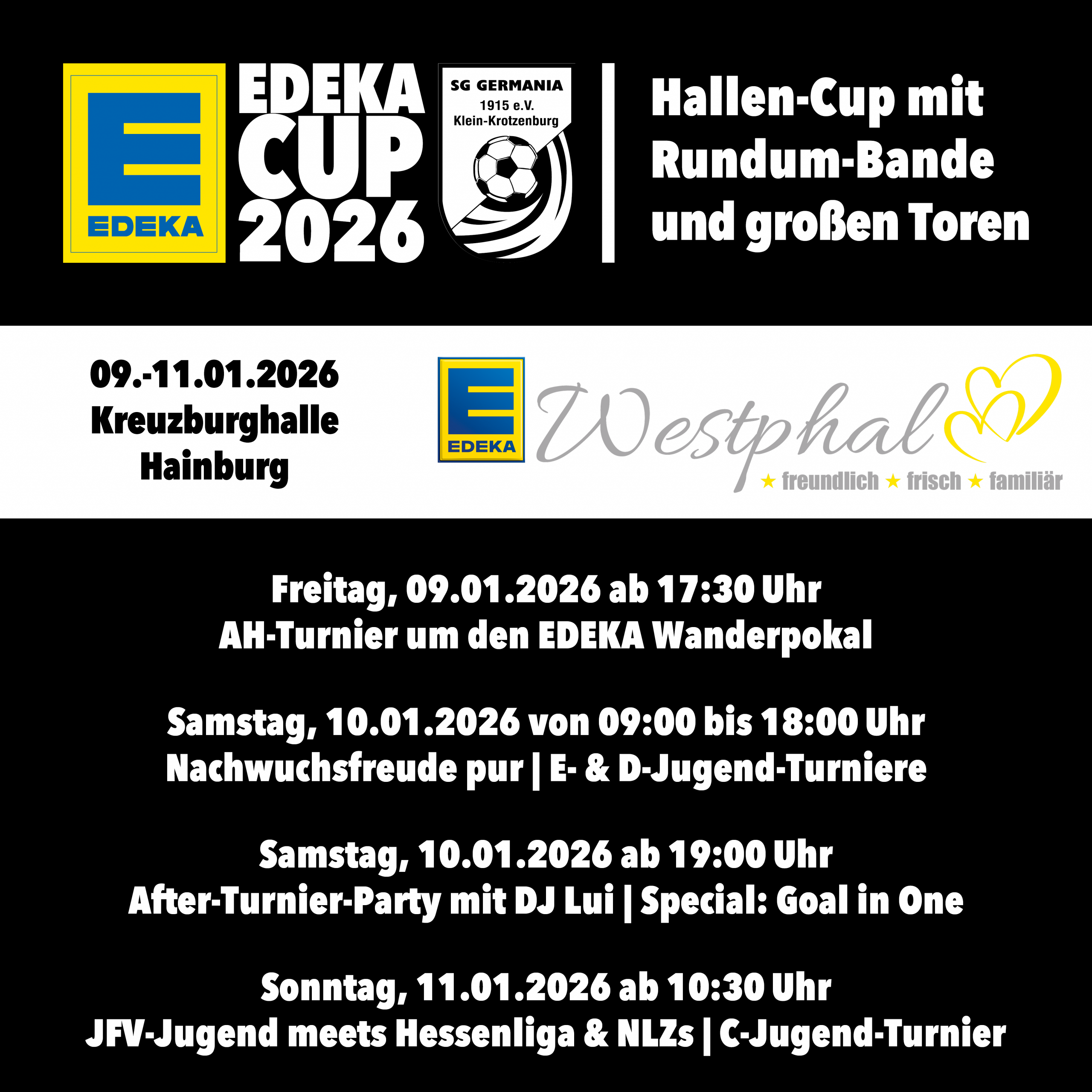 Der traditionelle Adventszauber der Germania findet in diesem Jahr am Samstag, den 13. Dezember 2025 ab 15:00 Uhr auf dem Sportgelände statt. Aus unseren festlich geschmückten Weihnachtsmarkt-Hütten heraus werden wir…