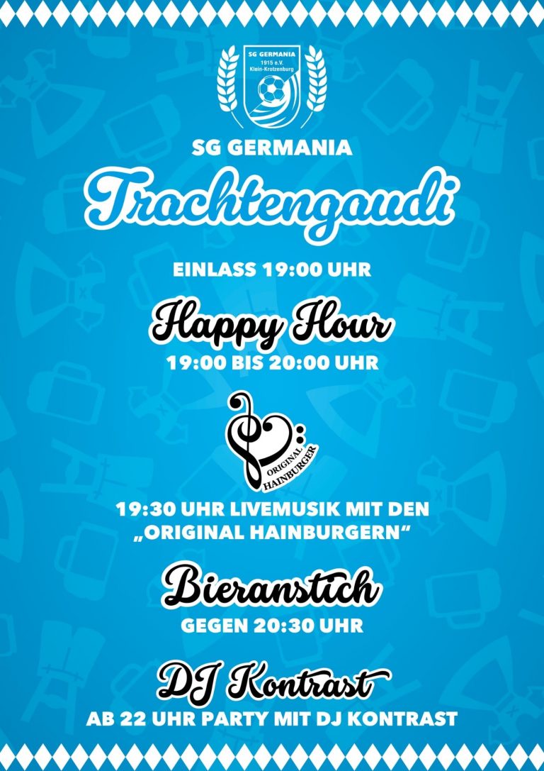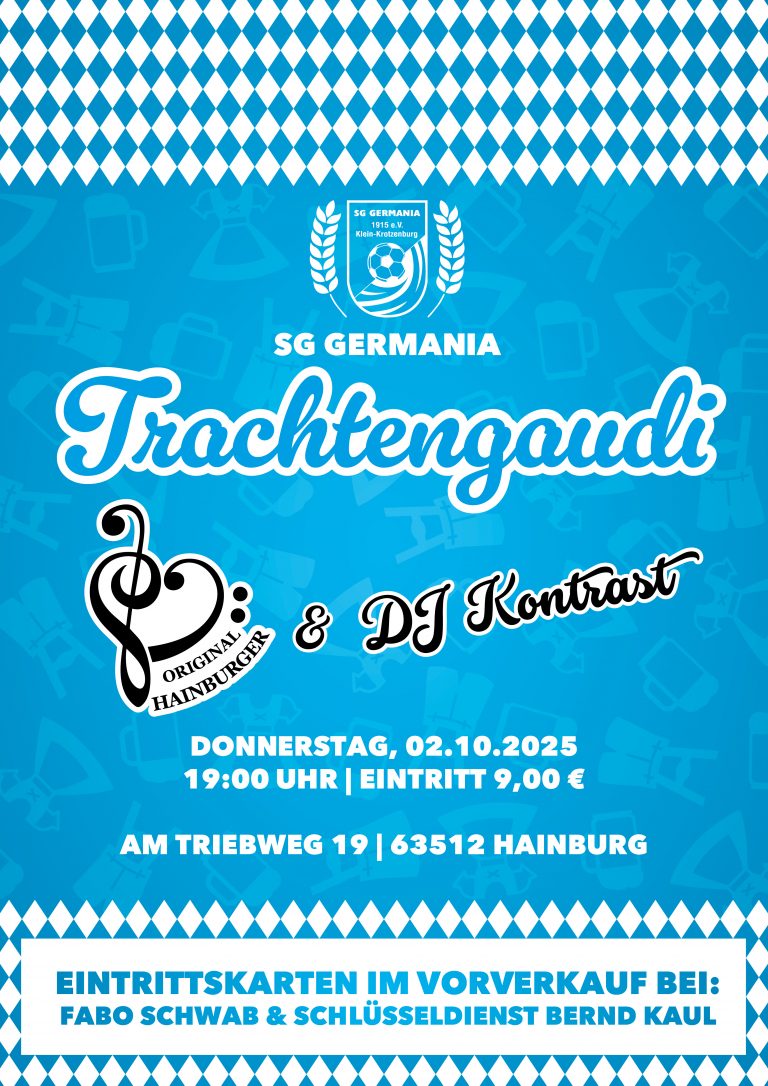 Es ist alles bereitet: Die Trachtengaudi der Germania ist für heute Abend startklar und die dann diensthabenden Spieler der 1. und 2. Mannschaft freuen sich auf viele Gäste, die für…