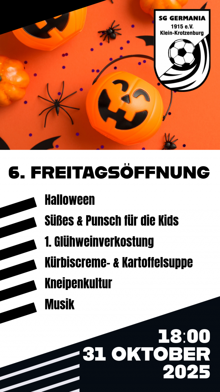Die Vereinsgaststätte macht zu Halloween auf und bietet einige „Specials“. Wir freuen uns auf zahlreichen Besuch.