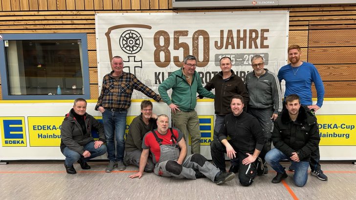 Der gesamte geschäftsführende Germania-Vorstand hat am Auftakt der 850 Jahre-Feierlichkeiten Klein-Krotzenburgs – Gottesdienst und Verköstigung des…